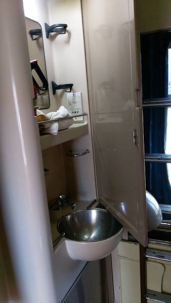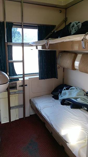 埃及的火車睡鋪意外的好睡, 至少我覺得比在德國火車還好睡一點, 車上有供餐, 早餐和晚餐, 每個房間裡有個小洗手台, 廁所在每個車廂的頭尾, 車掌會幫每個房間鋪床