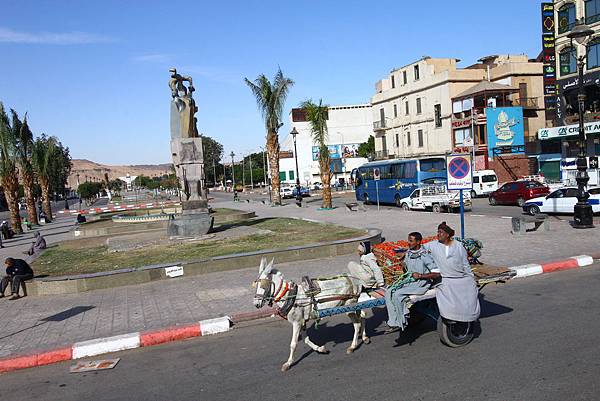 車站前的廣場,一眼望去到底就是尼羅河,沒有太繁忙的交通,許多驢車載著貨物走來走去, 埃及的美要到南部才能體會!